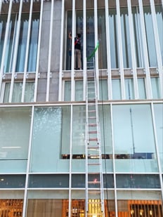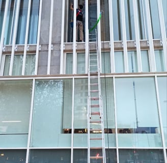 Realizamos limpiezas en altura con equipos especializados para garantizar la seguridad y eficacia.